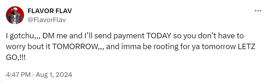 The post from the Vanderbilt University student went viral and caught the attention of rapper Flavor Flav, who responded: