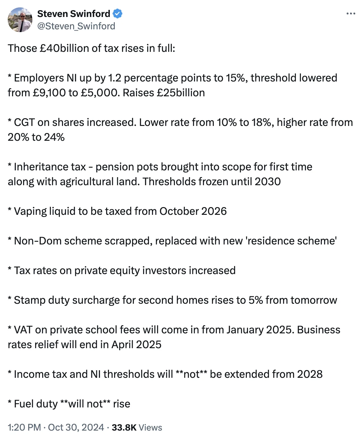 Business Leader’s political expert Steve Swinford has neatly summarised all the tax rises.